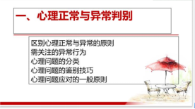 关于心理问题的识别标准,李海磊主任总结主要有三点原则:一、客观世界相统一的原则二、心理活动的内在协调性原则:三、个性的相对稳定性原则。而对于大学生中主要的心理问题和心理障碍,李海磊主任从一般常见的心理问题和严重的心理问题两方面进行了详细介绍,对于如何识别各种心理问题与心理障碍,关注大学生心理健康,起到了很好的预防作用。