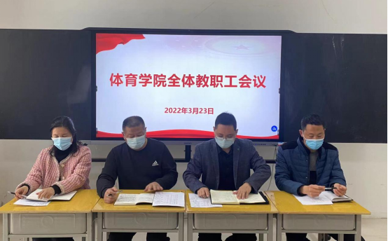2022323日下午,体育学院召开教职工会议,全体教职员工参加会议,会议由徐长宇院长主持。党总支书记王晖首先宣布了我院领导班子和各教研室主任调整的决定,要求新提任的同志尽快进入工作状态,团结一致,齐心协力,为体育学院的发展作出各自的贡献。